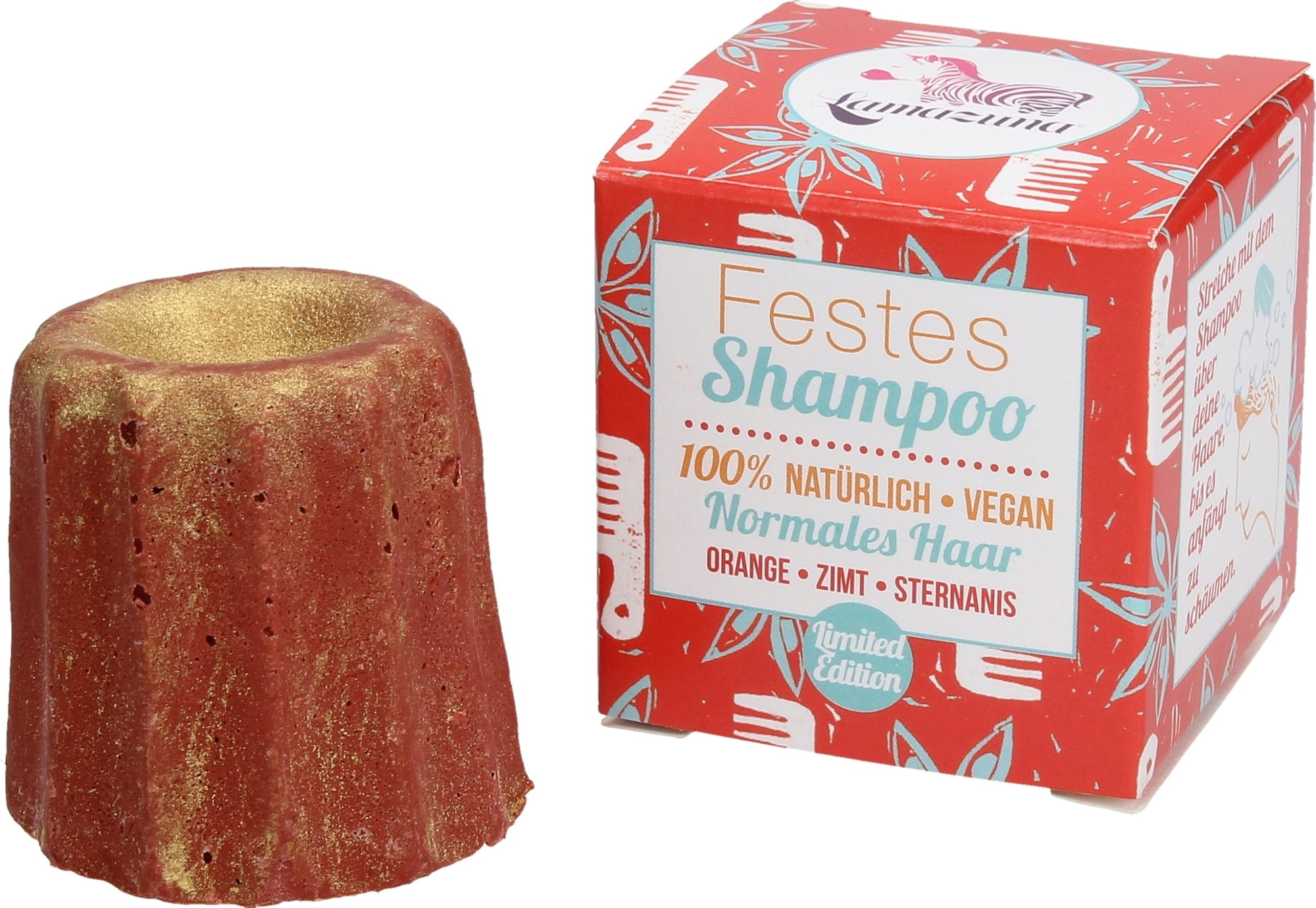 Beautiful golden glitters and the gorgeous scent of orange, cinnamon and star anise makes this solid shampoo by Lamazuna perfect for the Christmas season! It gently cleanses normal hair and is also particularly easy to use. In addition, it can be taken along on your travels and amounts to 2 bottles of liquid shampoo. Handmade in near Nice, France.